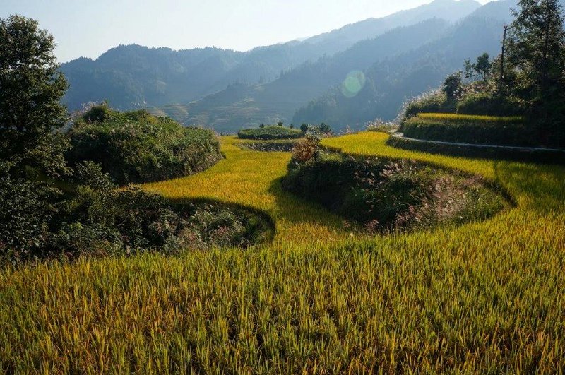 Po zajtrku se bomo odpeljali do železniške postaje in se vkrcali na hitri vlak, ki nas bo popeljal do mesta Guilin. Tako bomo v manj kot 4 urah premagali približno 850 km in med potjo uživali v pokrajini ob progi. Okrog poldneva bomo prispeli v Guilin. Popoldne se bomo odpeljali v pokrajino, ki slovi po najlepših riževih terasah na svetu, Longji, kar v prevodu pomeni zmajeva hrbtenica. Terase so pričeli graditi pred približno 700 leti, za časa dinastije Yuan, in jih uporabljajo še dandanes, enako skrbno uspešno kot tedaj. Raztezajo se od nadmorske višine 380 m pa vse do 1.180 m in prekrivajo cele hribe. Pogled nanje je zares veličasten! Ta del Jugozahodne Kitajske poseljujejo različne etnične manjšine in eno med njimi bomo obiskali v njihovi vasi Gu Zhuang, v kateri složno živijo Zhuangi in pa etnija Yao. Etnija Zhuang predstavlja najštevilčnejšo etnično manjšino na Kitajskem in znani so kot izjemno dobri pevci. Nastanitev v hotelu, večerja in nočitev (Z,V).