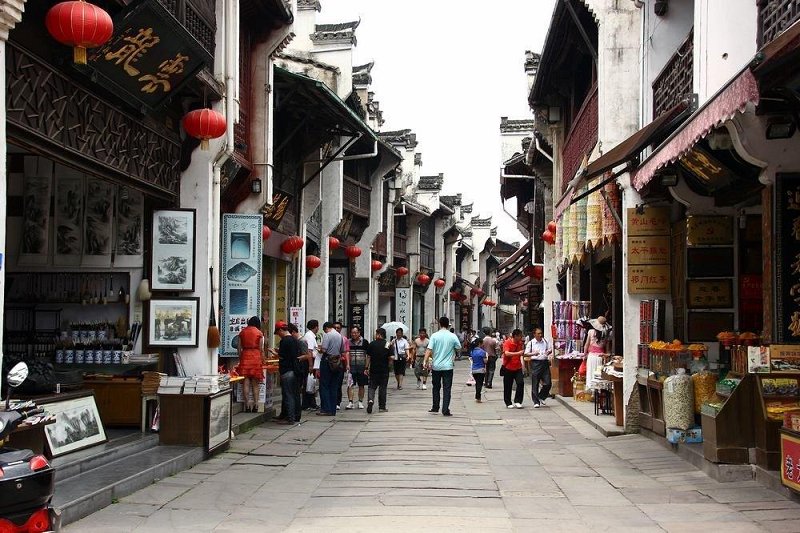 Dopoldne se bomo odpeljali iz hotela do železniške postaje v Šanghaju, od koder se bomo s hitrim vlakom odpeljali do mesta Huangshan. V dveh urah in pol bomo premagali razdaljo preko 400 km. Po prihodu v mesto se bomo odpeljali v stari del imenovan Tunxi, ki se nahaja v središču mesta. Sestavlja ga ena glavna in tri vzporedne ter 18 prečnih ulic, kjer se skupaj nahaja približno 300 starih kitajskih zgradb, zgrajenih v stilu Hui. Tunxi se nahaja na sotočju treh rek in je zato poznan pod imenom rečni zemljevid Qingming. Velja za eno najbolje ohranjenih in najlepših starih tradicionalnih kitajskih tržnic z zgradbami iz različnih dinastij: Song, Ming in Qing. Po večerji nastanitev v hotelu, večerja in nočitev (Z,V).